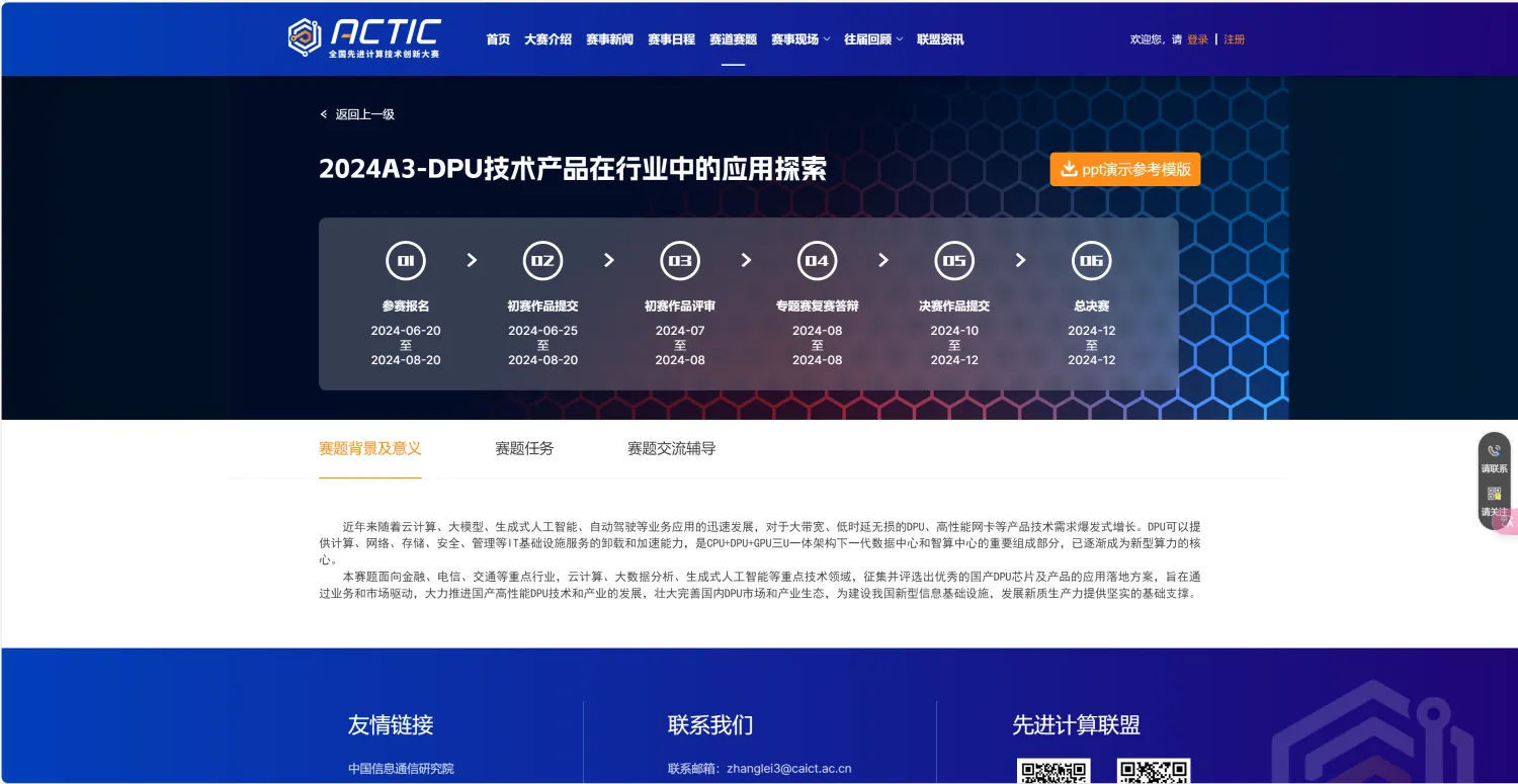 本赛题面向金融、电信、交通等重点行业,云计算、大数据分析、生成式人工智能等重点技术领域,征集并评选出优秀的国产DPU芯片及产品的应用落地方案,旨在通过业务和市场驱动,大力推进国产高性能DPU技术和产业的发展,壮大完善国内DPU市场和产业生态,为建设我国新型信息基础设施,发展新质生产力提供坚实的基础支撑。